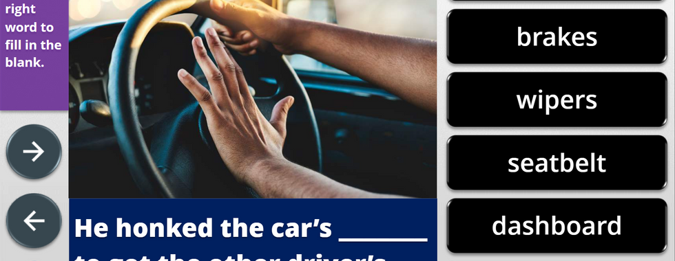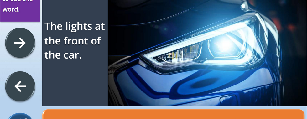 Hard Level: Challenges learners with advanced vocabulary related to car parts.